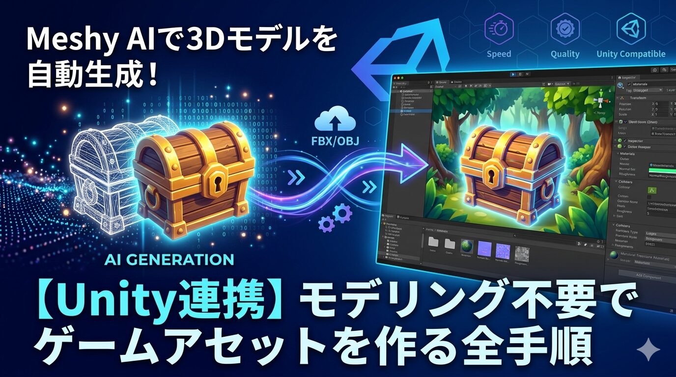 かつては数日かかっていた3Dモデリングが、今では数分で終わる時代になりました。Meshy AIを活用することで、あなたは「アセット制作」に費やしていた時間を、「ゲームの面白さを磨く時間」に充てることができます。