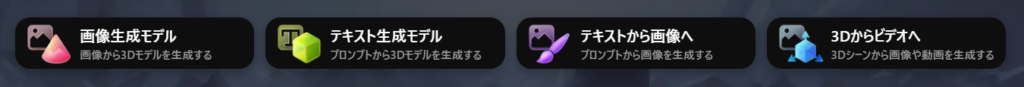 Meshyのダッシュボードから「テキスト生成モデル(プロンプトから3Dモデルを生成する)」を選択します。